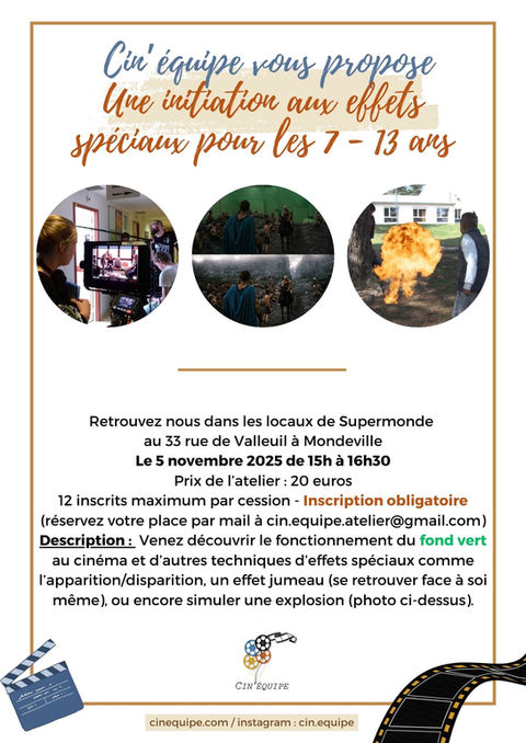 Cin’équipe a pour objectif de rendre le septième art accessible à tous, en proposant des ateliers cinéma en Normandie. Que ce soit pour un atelier ponctuel ou pour un projet plus long, nous nous adaptons à vos demandes et à votre public afin de vous proposer l’offre la plus adaptée à vos envies. Les ateliers sont accessibles dès l’âge de 7 ans.